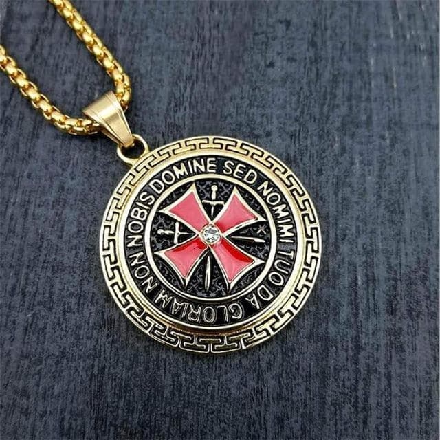 This is the motto of the Knights Templar, perfectly embossed in Latin on this durable stainless steel necklace. Enveloping the famous insignia, Red Cross which symbolizes martyrdom, represents the belief of the Knights Templar that dying in battle is a great honor. Be the righteous knight you are! Have your own Knights Templar’s insignia.