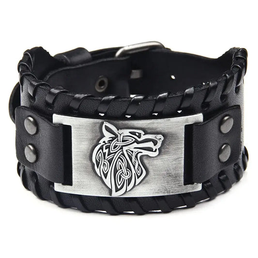 Vintage Viking Wolf Head Leather Braided Bracelet