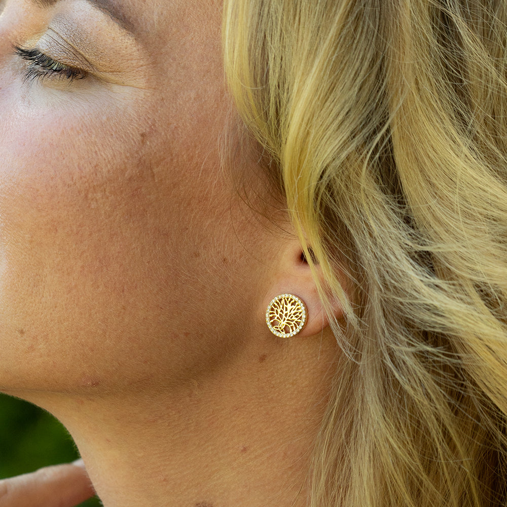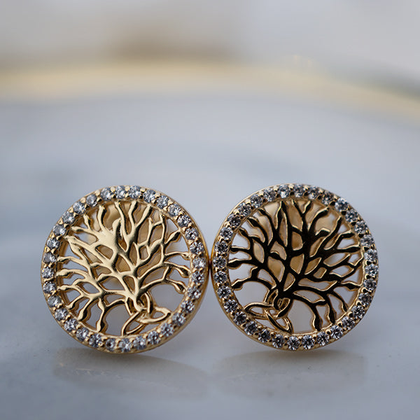 Celtic Tree of Life 18K Yellow Gold Diamond Earrings