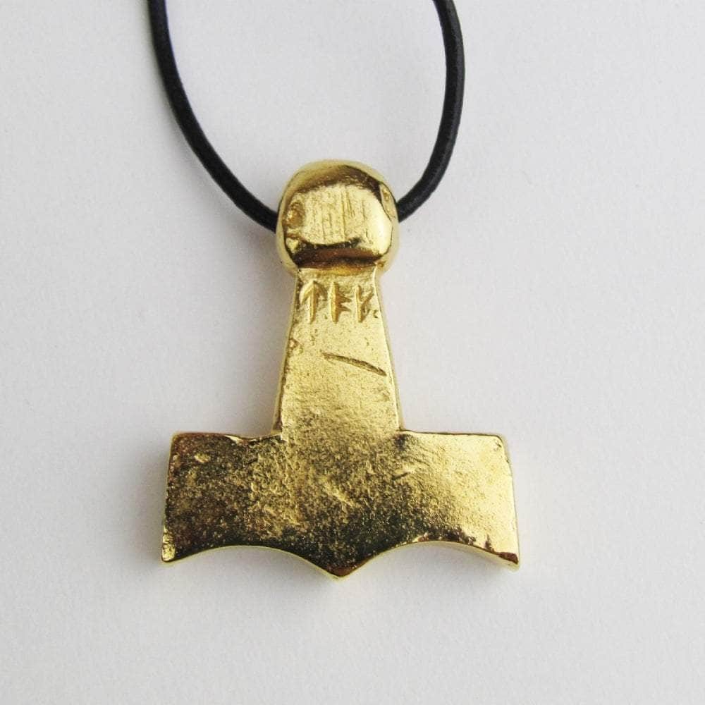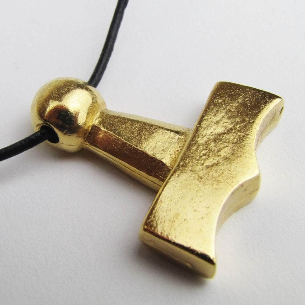 This Viking Necklace is hand-made in Scotland. It's is a gold plated, pewter casting of a Mjolnir/Thor's hammer replica, of one from the Viking period that was found in Denmark. The pendant weighs approx. 18g Thor's Hammers are worn by followers of the Norse god, Thor for protection. It is hand made in Scotland from lead free pewter, then gold plated, and comes ready to wear with a length of black cord.