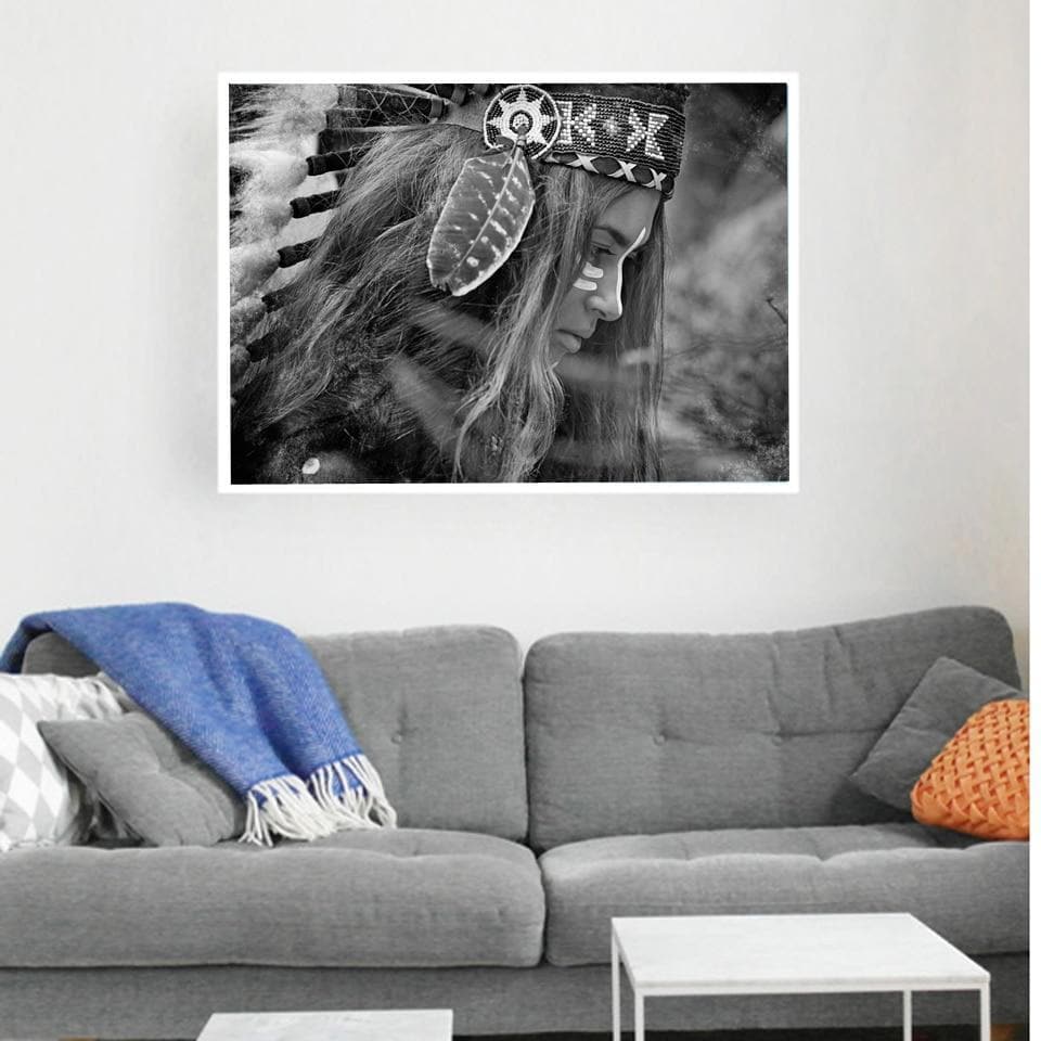 Get rid of the dull wall in your living room! This mesmerising black and white canvas of the beautiful Native American women, the leaf on her headband represents the growth, strength and healing. This canvas will be motivating to young women.