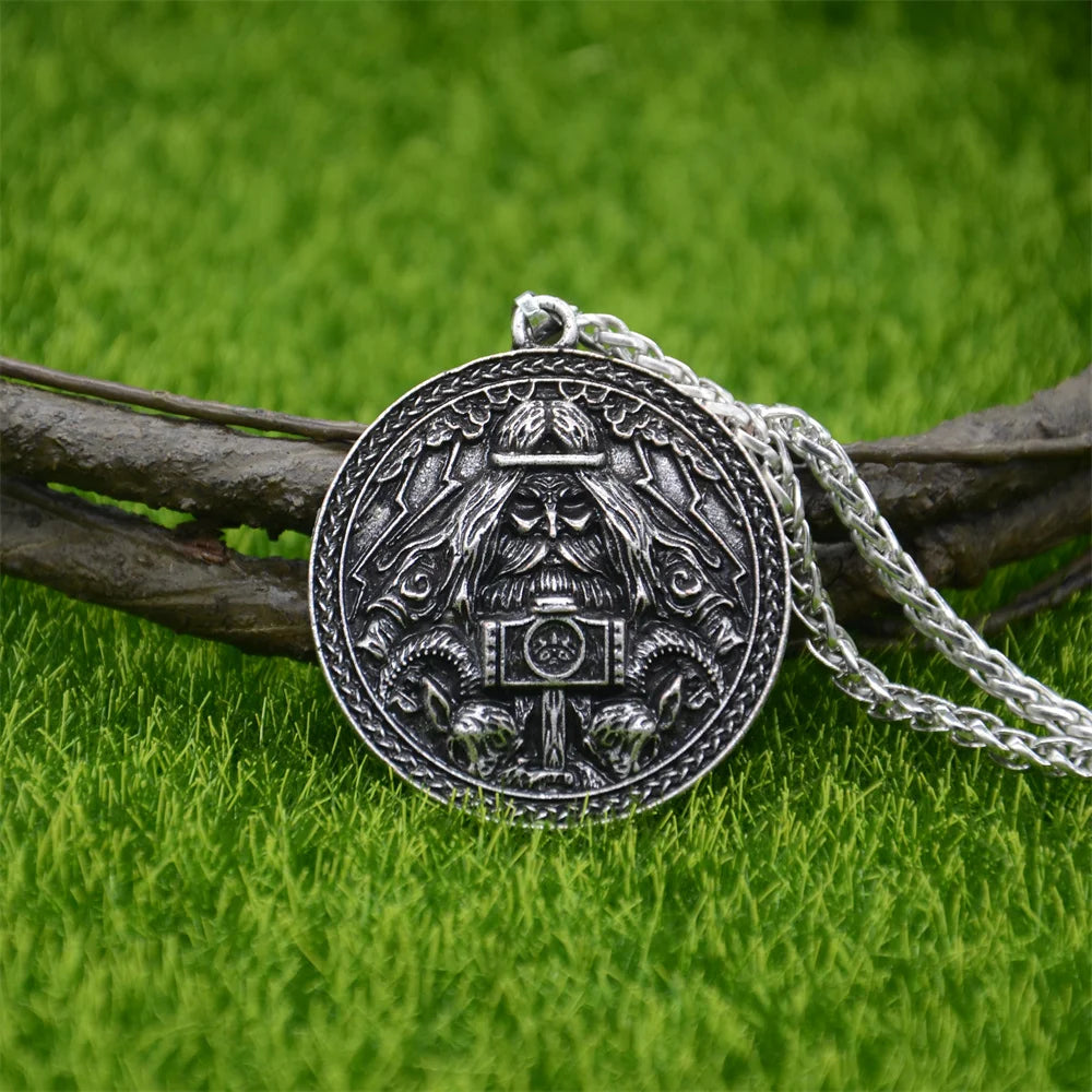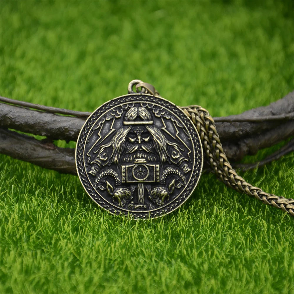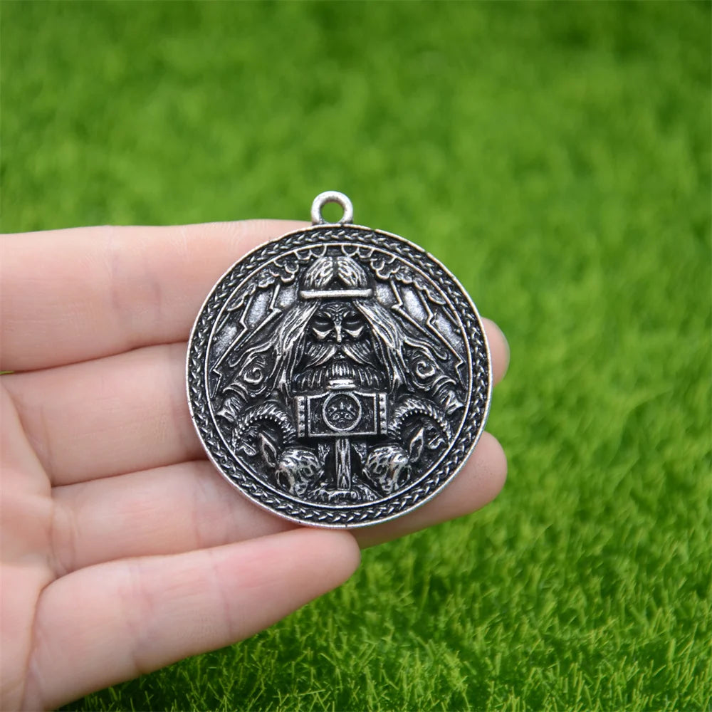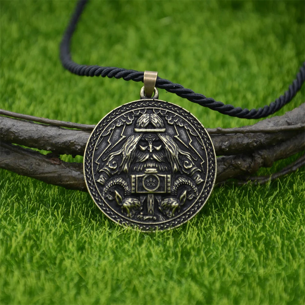Channel the raw might of Thor with this detailed bronze talisman pendant. Featuring the Norse god himself holding his legendary hammer Mjölnir, surrounded by Viking runes and mythic beasts, this amulet is a bold symbol of power, protection, and warrior pride.