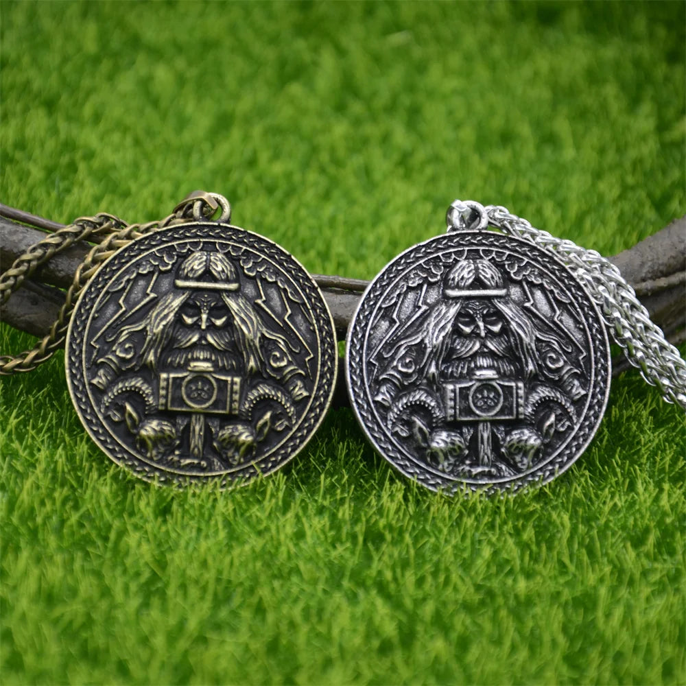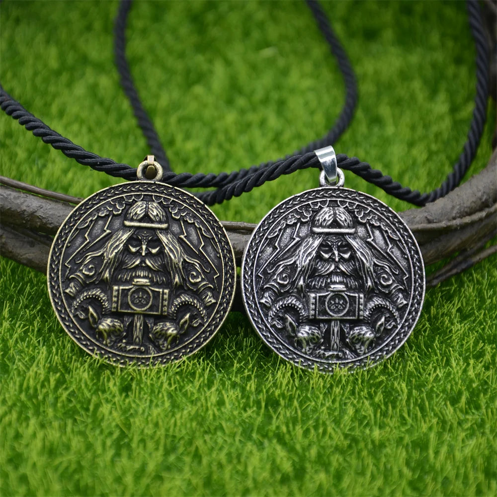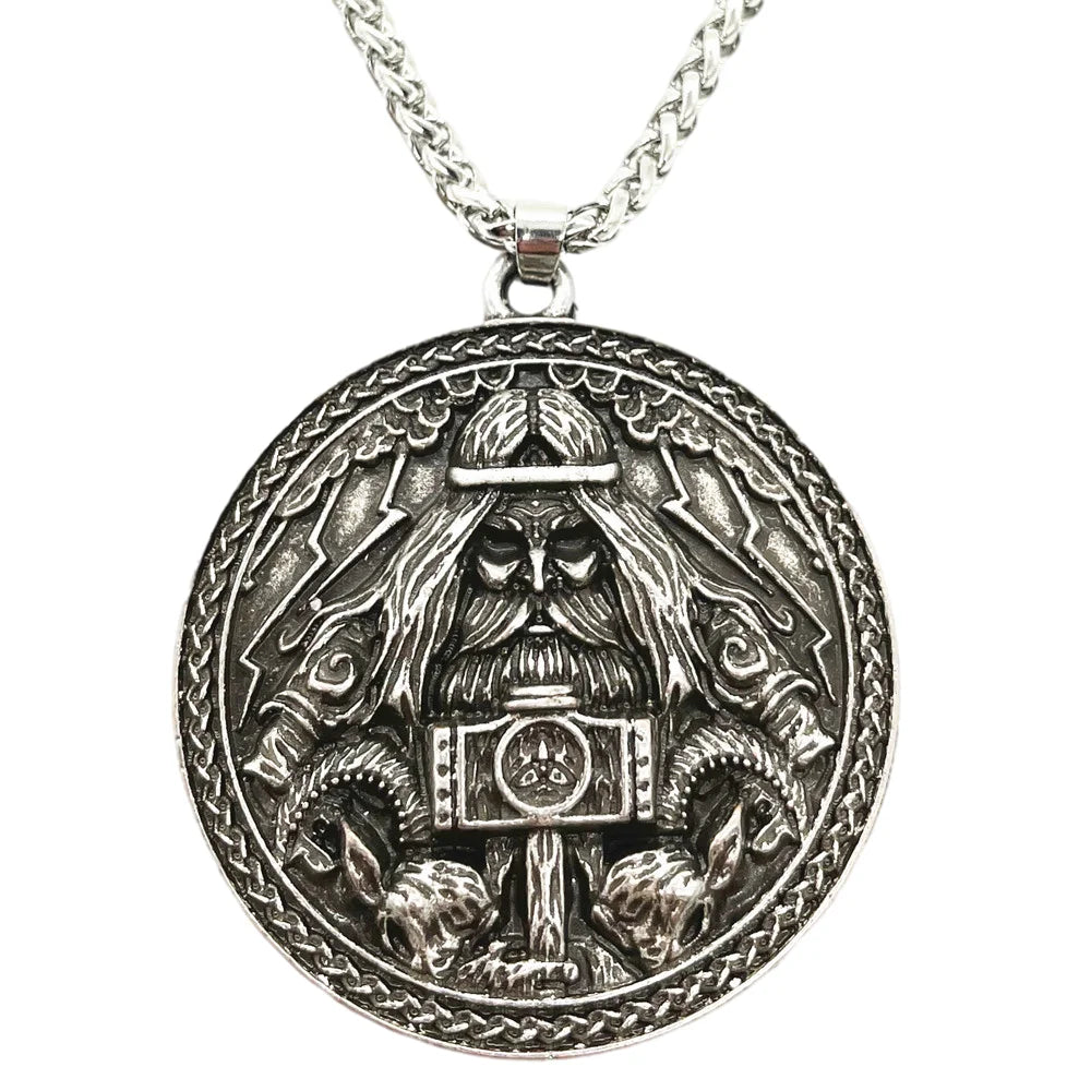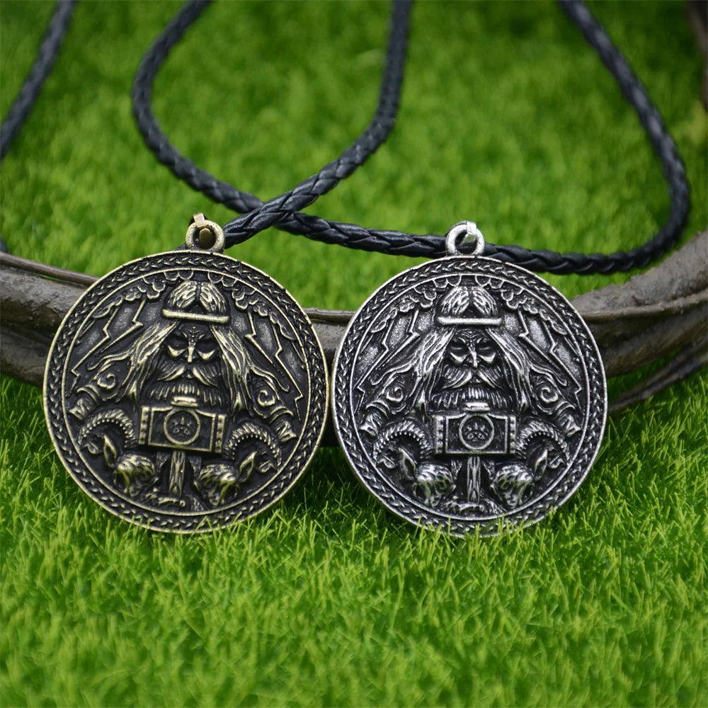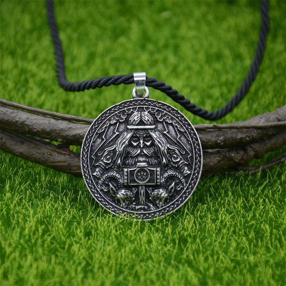 Channel the raw might of Thor with this detailed bronze talisman pendant. Featuring the Norse god himself holding his legendary hammer Mjölnir, surrounded by Viking runes and mythic beasts, this amulet is a bold symbol of power, protection, and warrior pride.