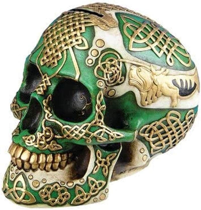 Pacific Giftware Celtic Green Lion Tribal Knot Tattoo Coat of Arms Skull Money Bank Figurine Coin
