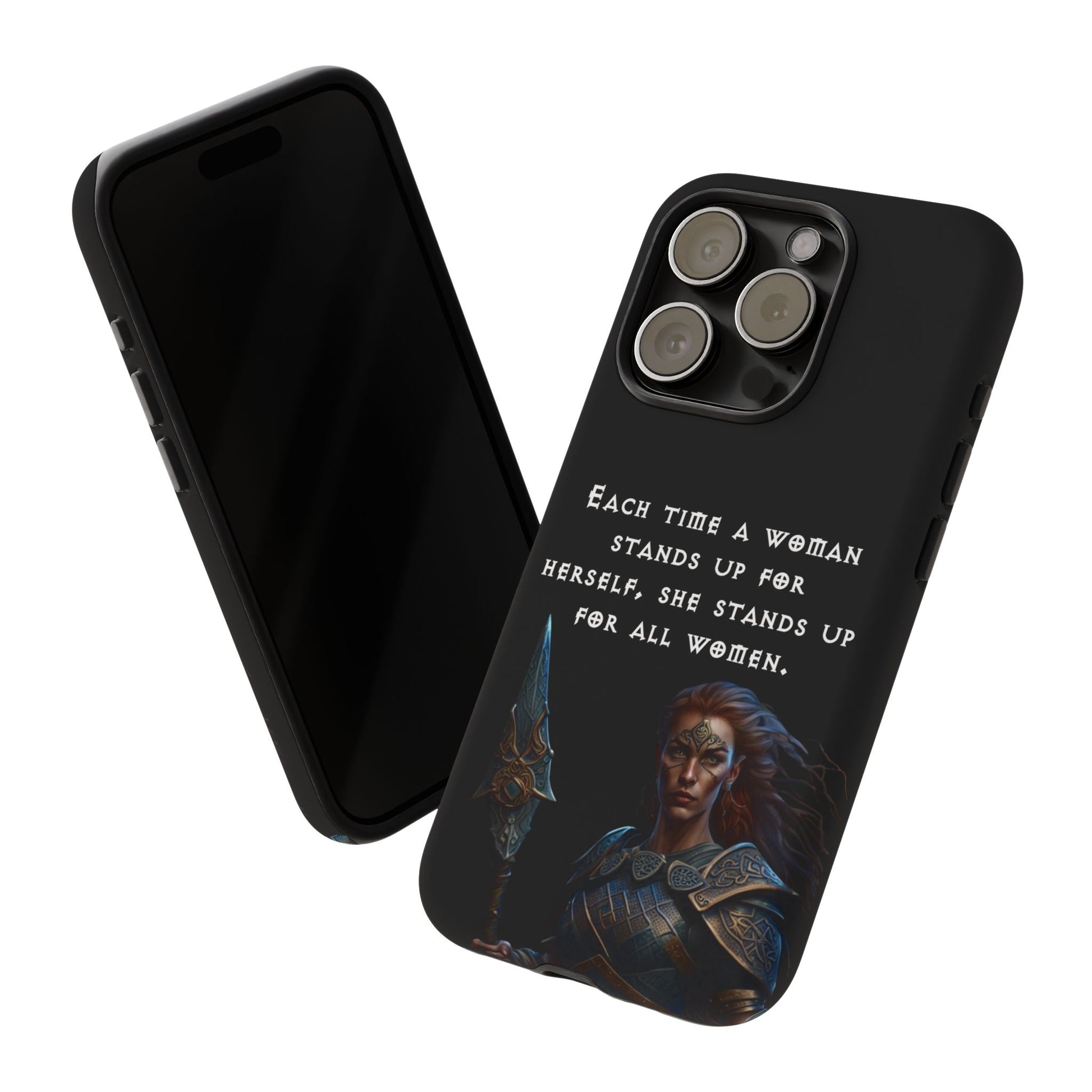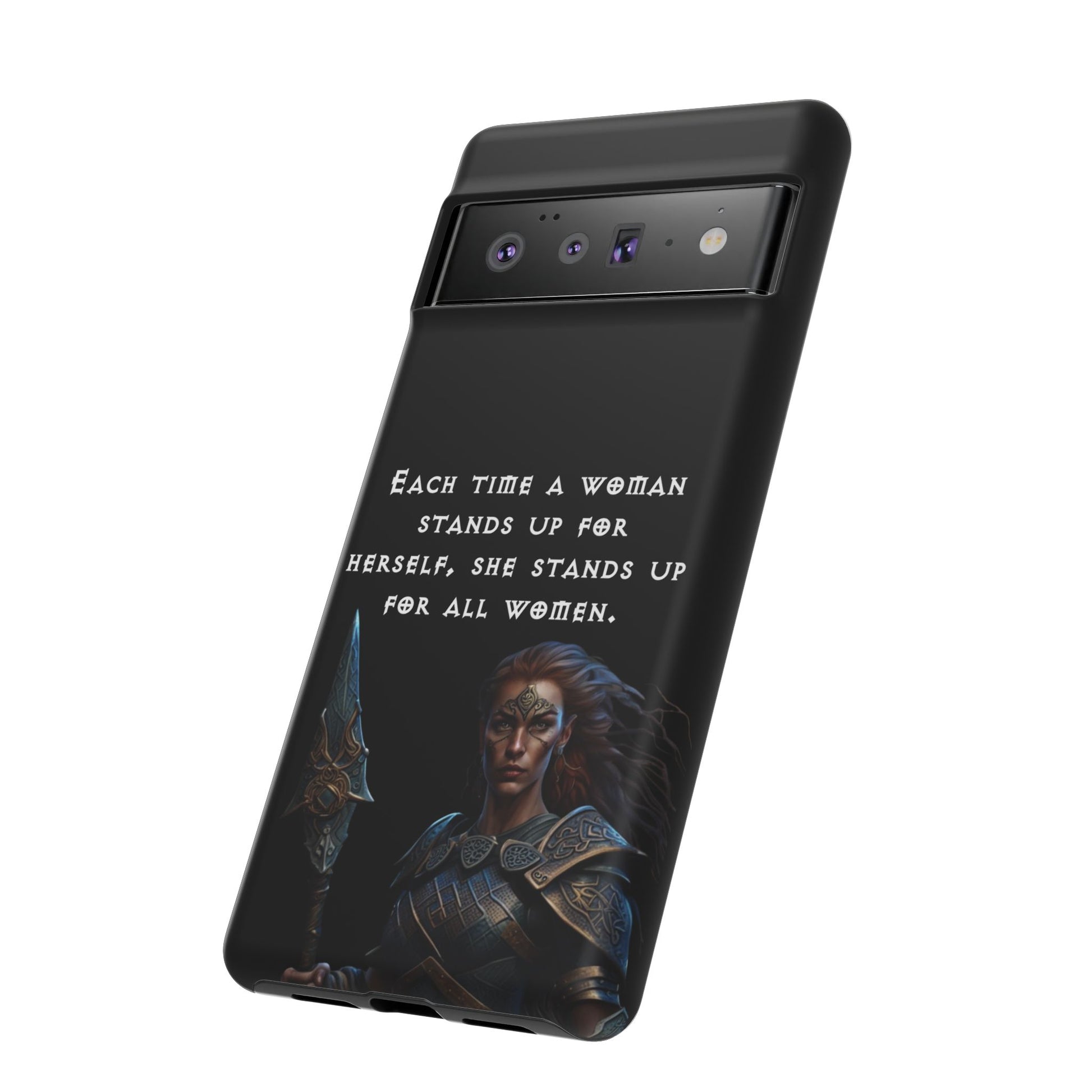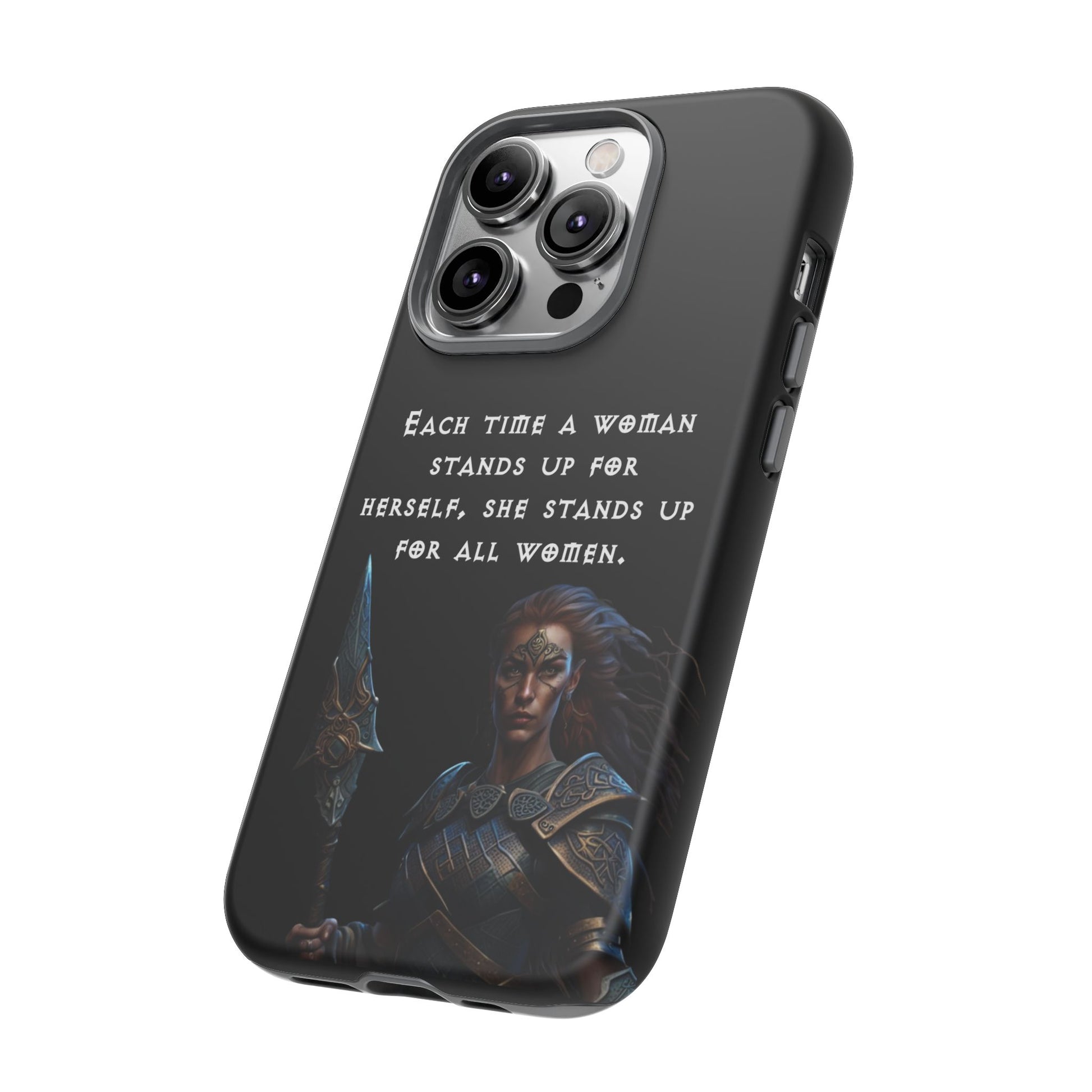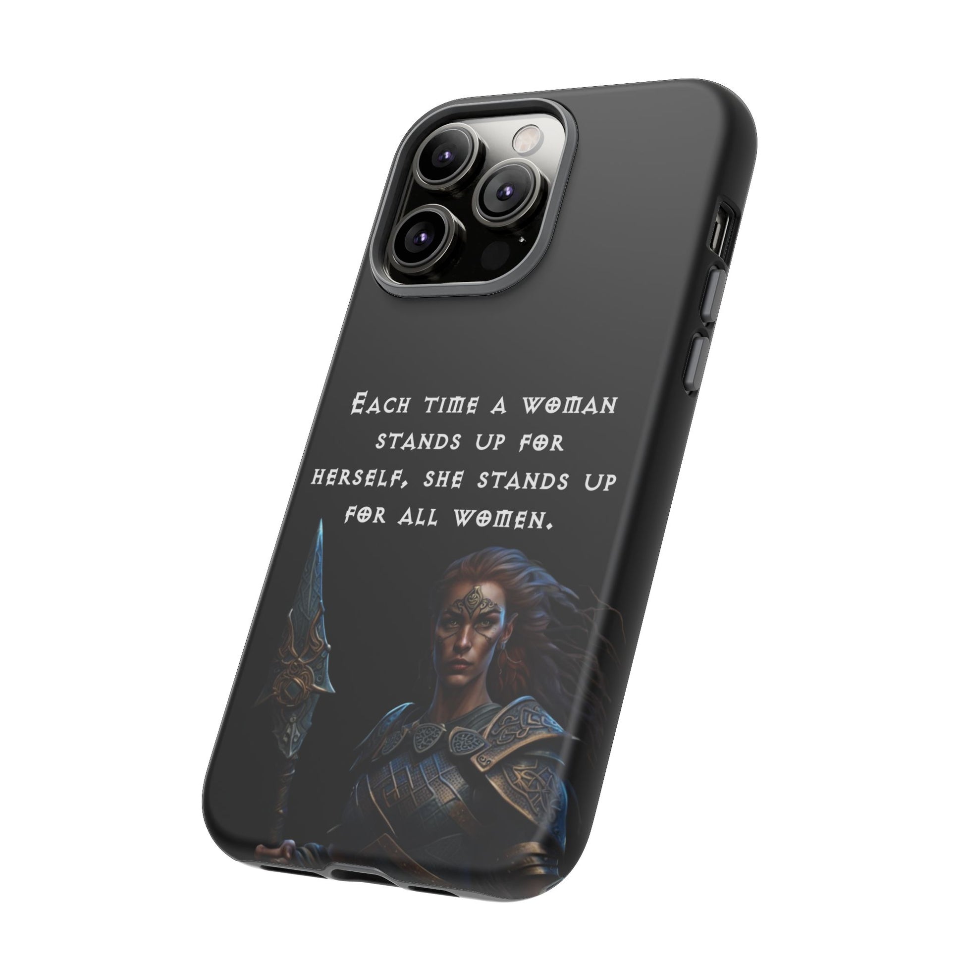 This fierce case features a warrior woman ready for battle, paired with the empowering quote: