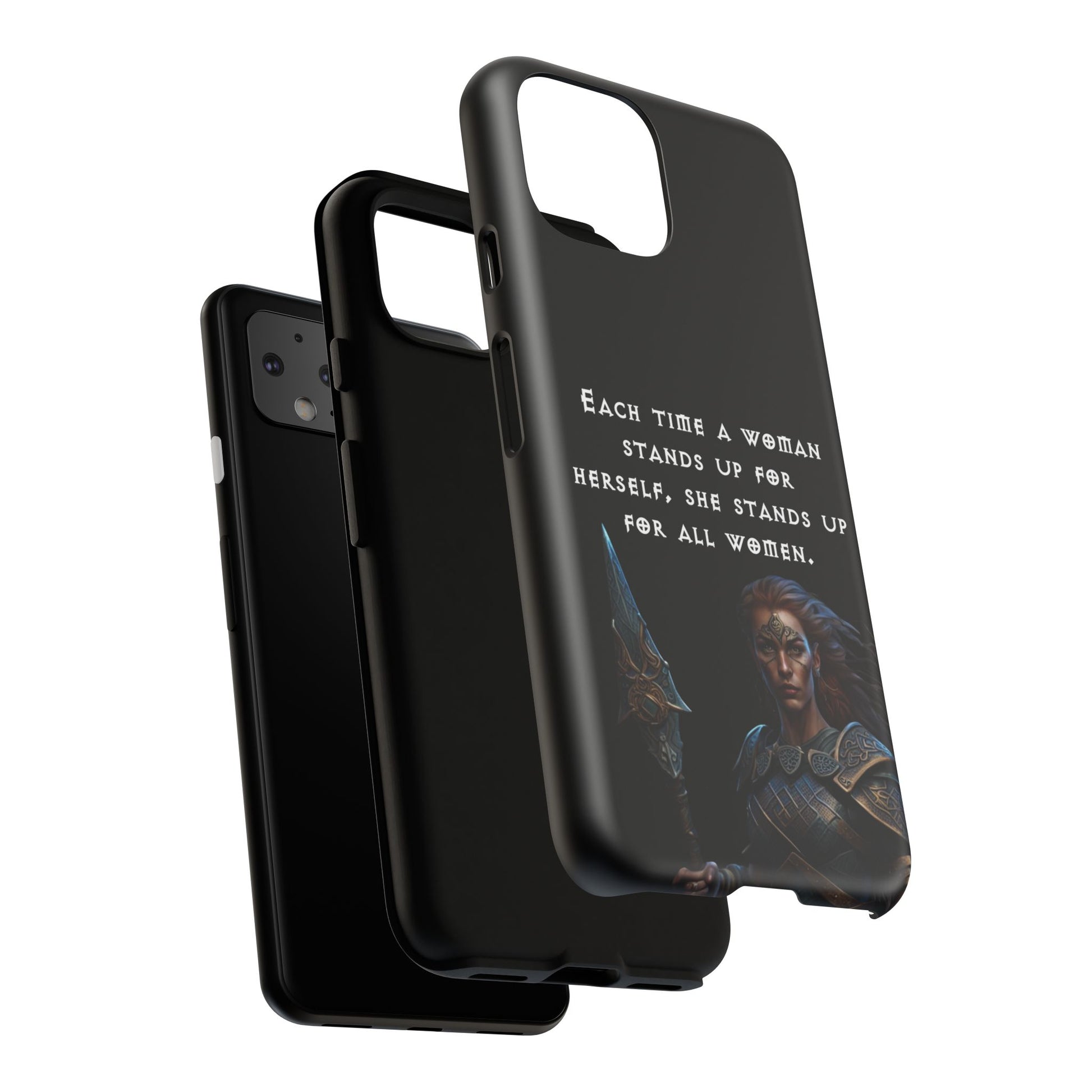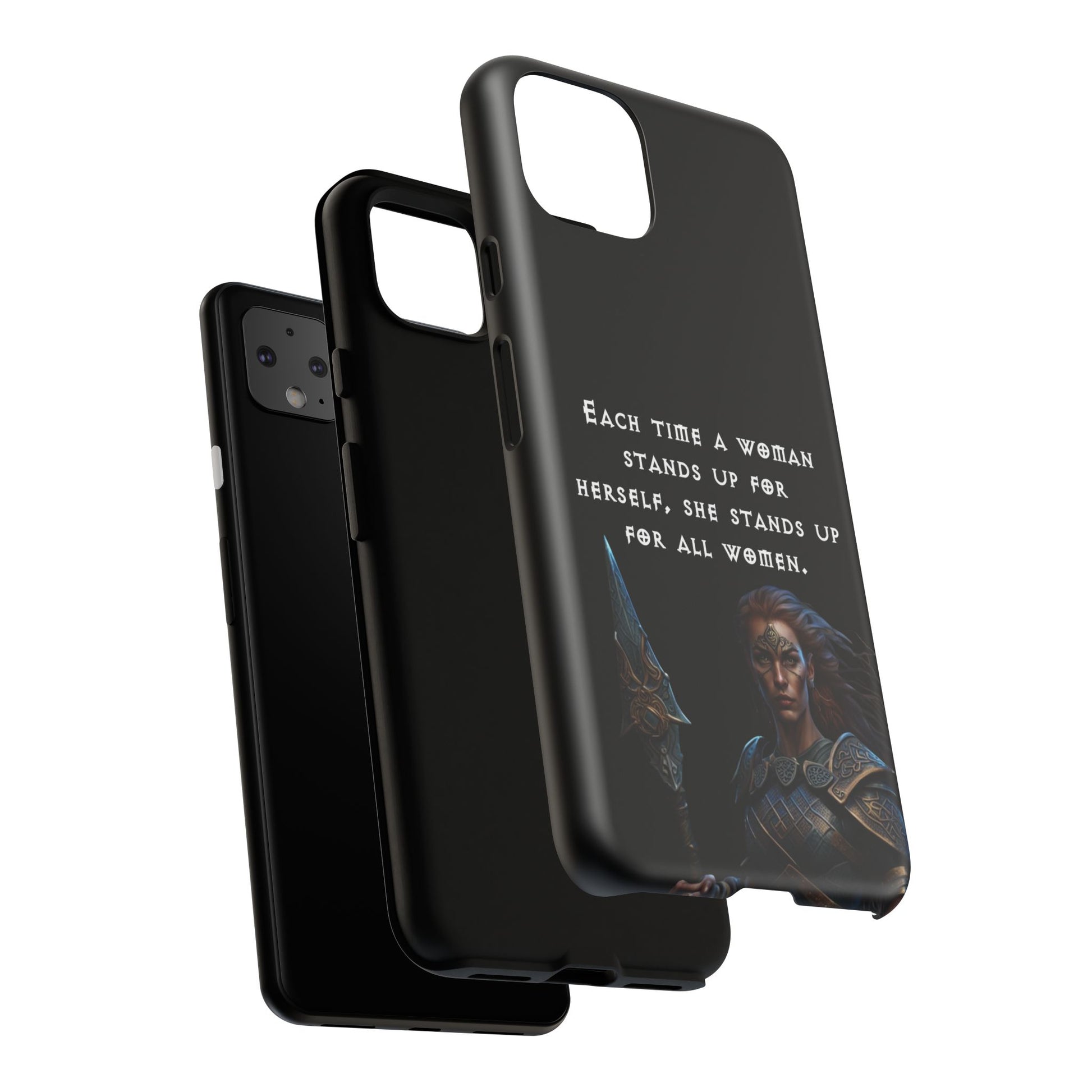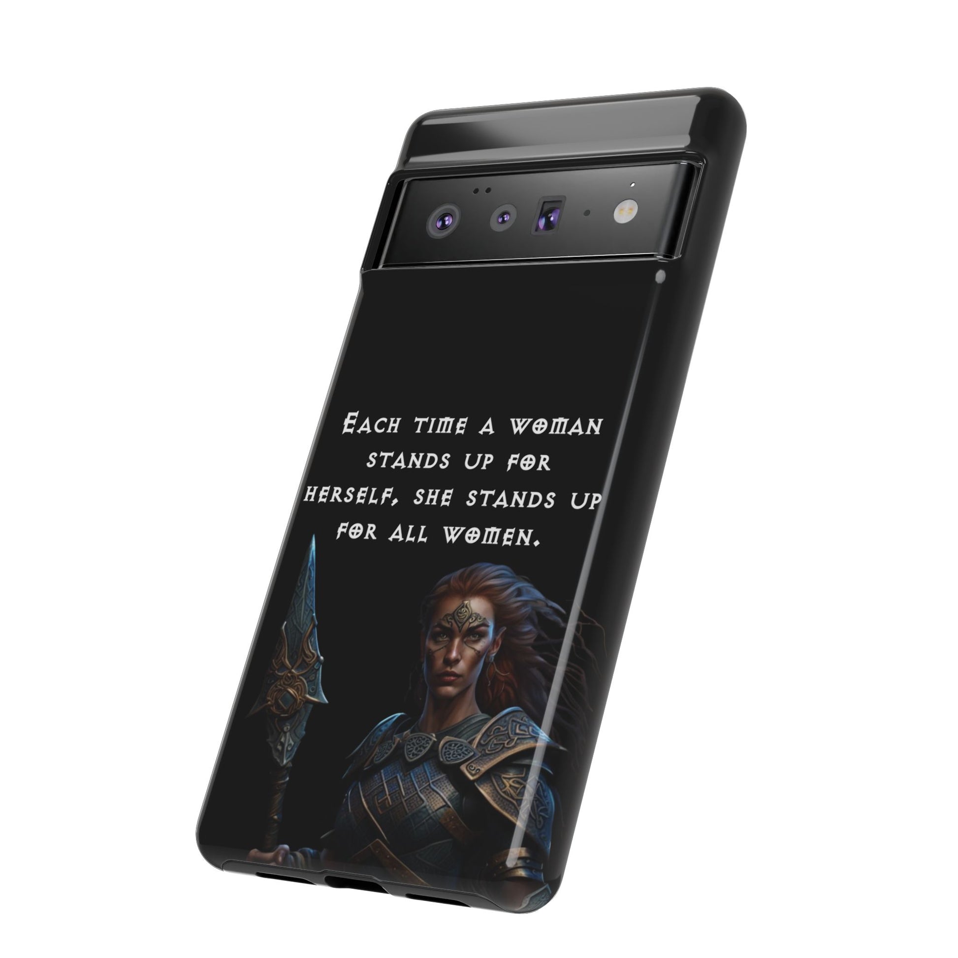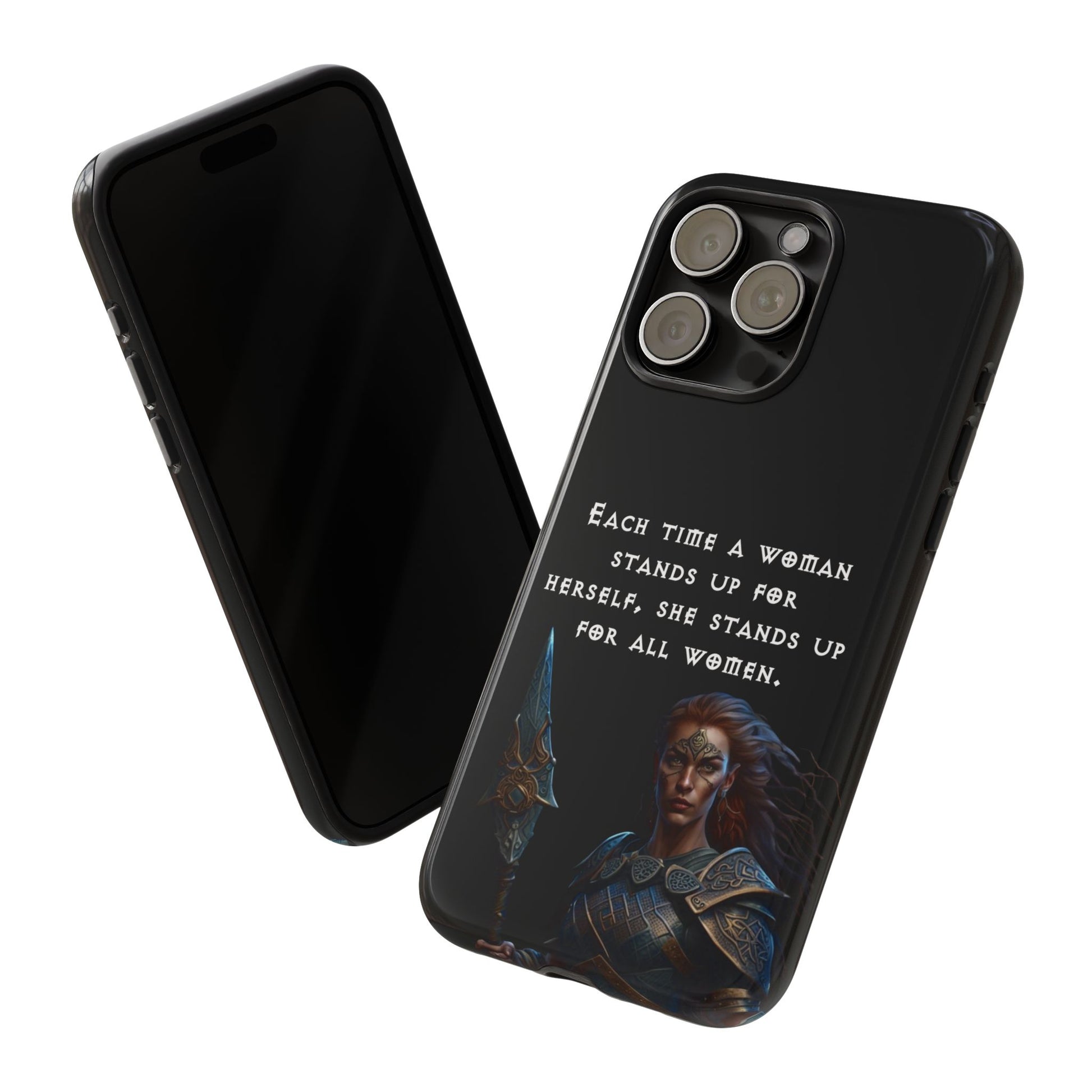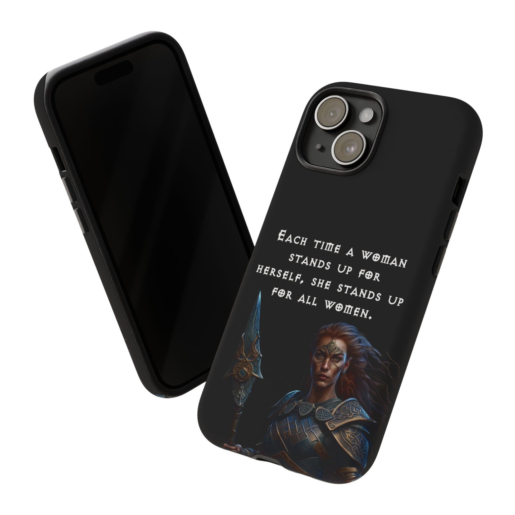 This fierce case features a warrior woman ready for battle, paired with the empowering quote: