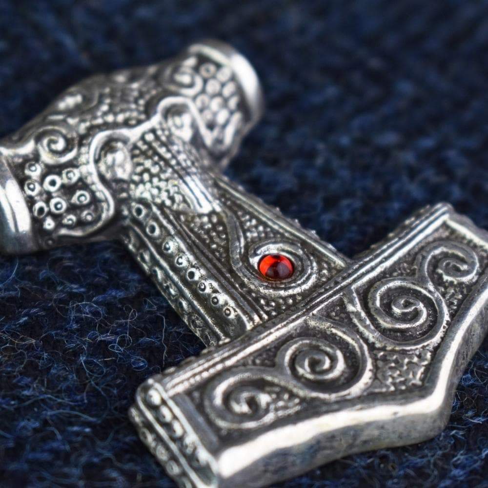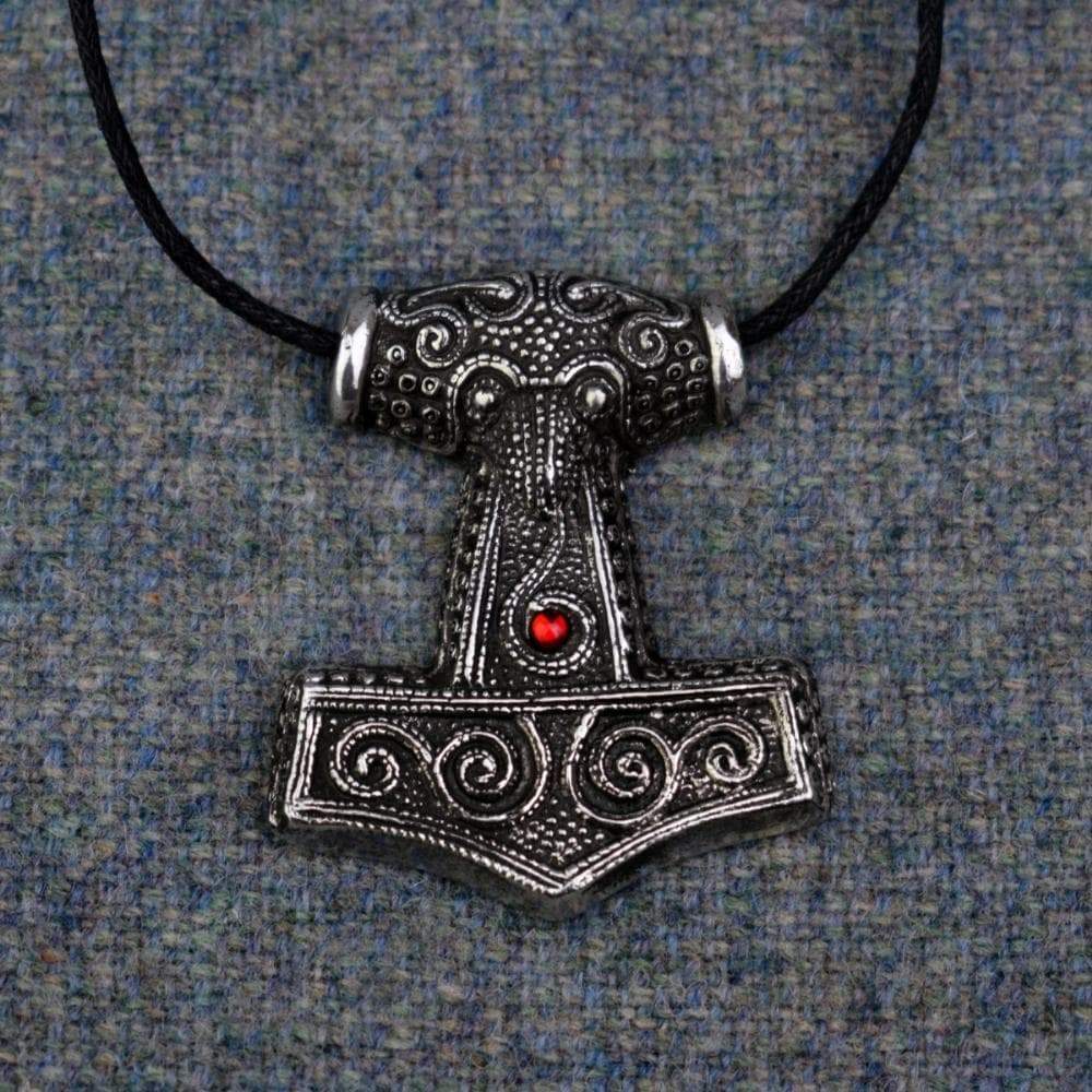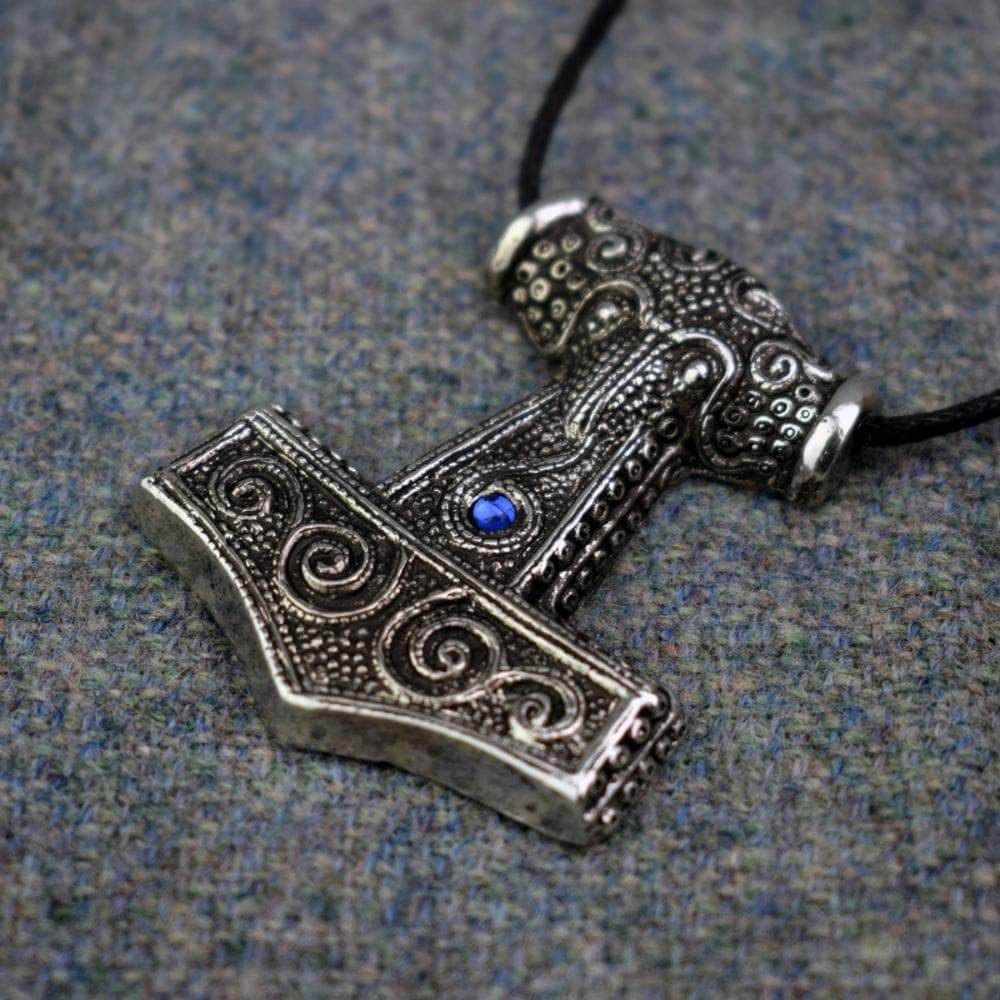 Vikings Skane Thor Hammer Glass Stone Pendant