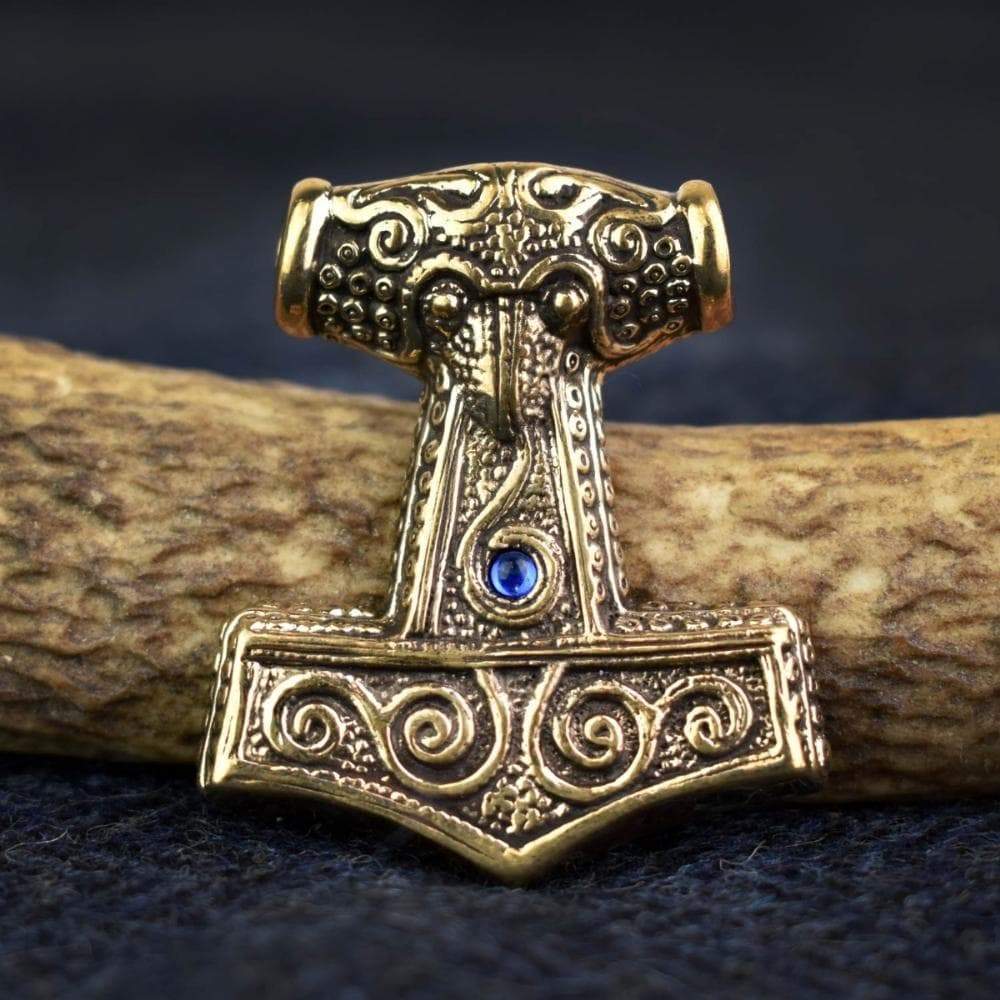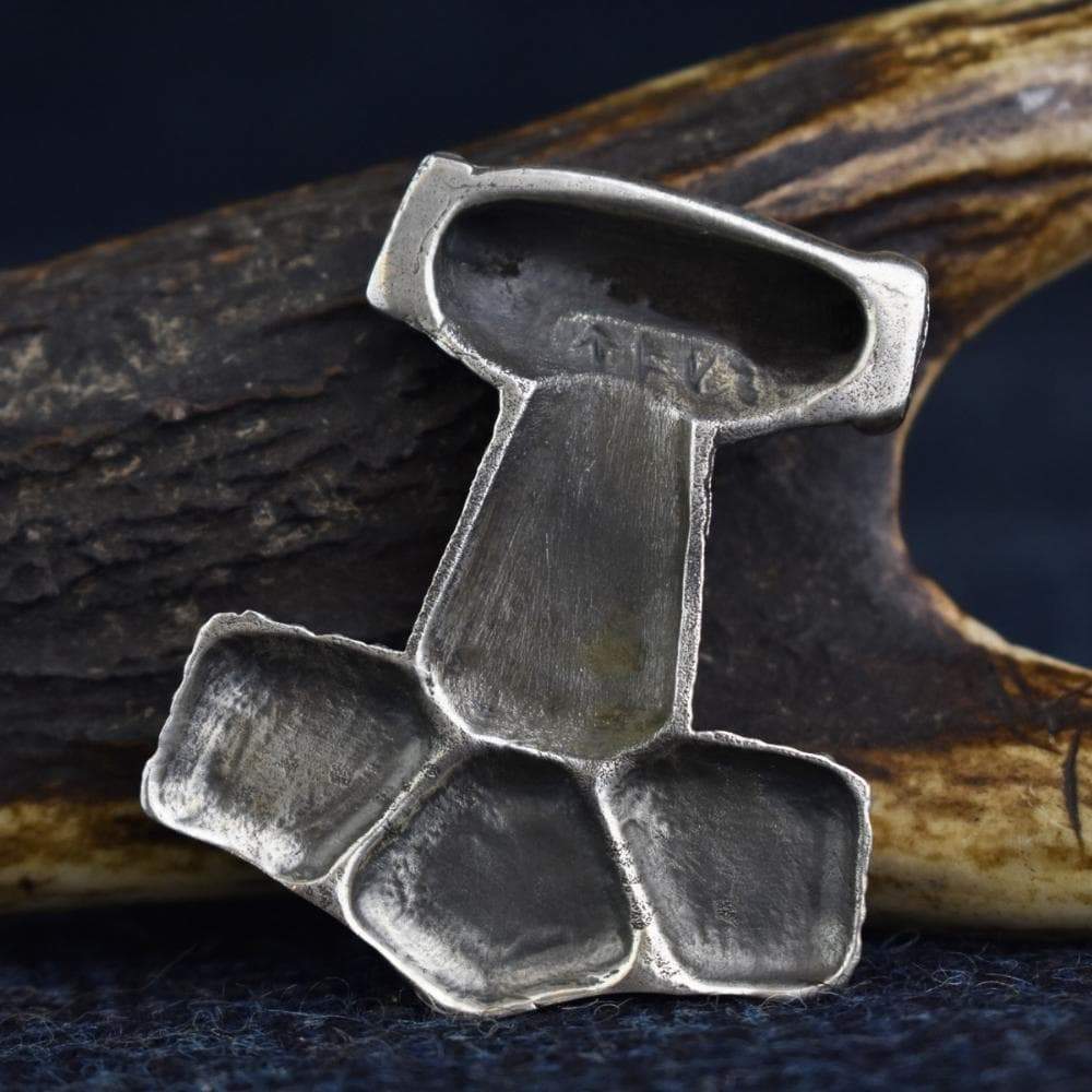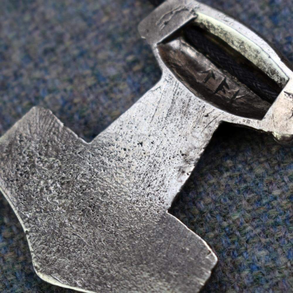 This stunning solid Thor's hammer Mjolnir pendant is a replica of one from the Viking period that was found in Skane, Sweden, and features mini studs and scroll detailing. Thor’s Hammers were worn by followers of Thor for protection. This detailed Thor hammer pendant was widely used as religious amulets during the Viking Age, with wearers hoping to invoke the favor of the thunder and fertility god Thor.