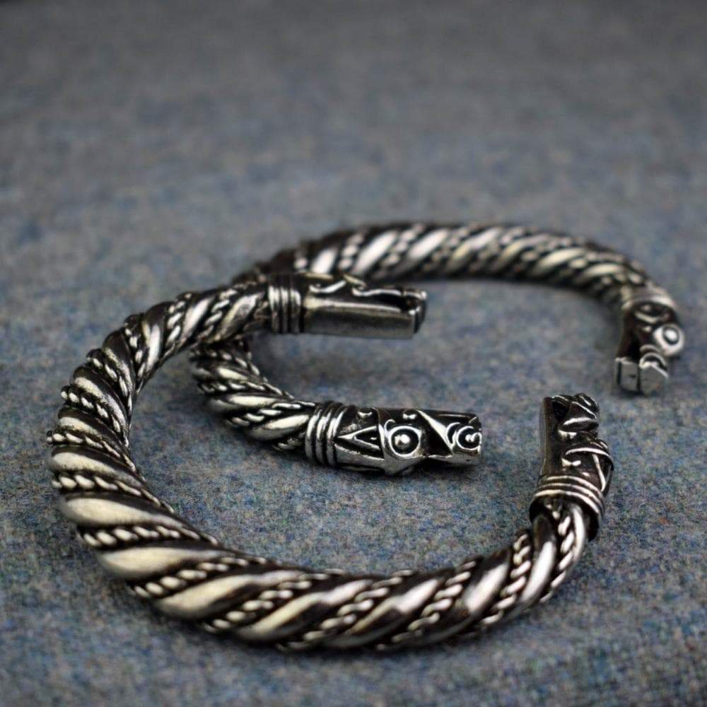 This thick solid bracelet is originally designed by Asgard based on the silver bracelet found in the Viking age. It is carefully hand made from high-quality lead-free pewter to obtain the high-detailed dragon head terminals design at each end. Asgar's workshop is located in Scotland - United Kingdom.