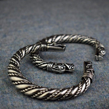 This bracelet represents the most fearless creature in the Viking era - the Dragon. It is the most common design seen in their jewelry, armor, and ships. It symbolized great power to the Vikings.