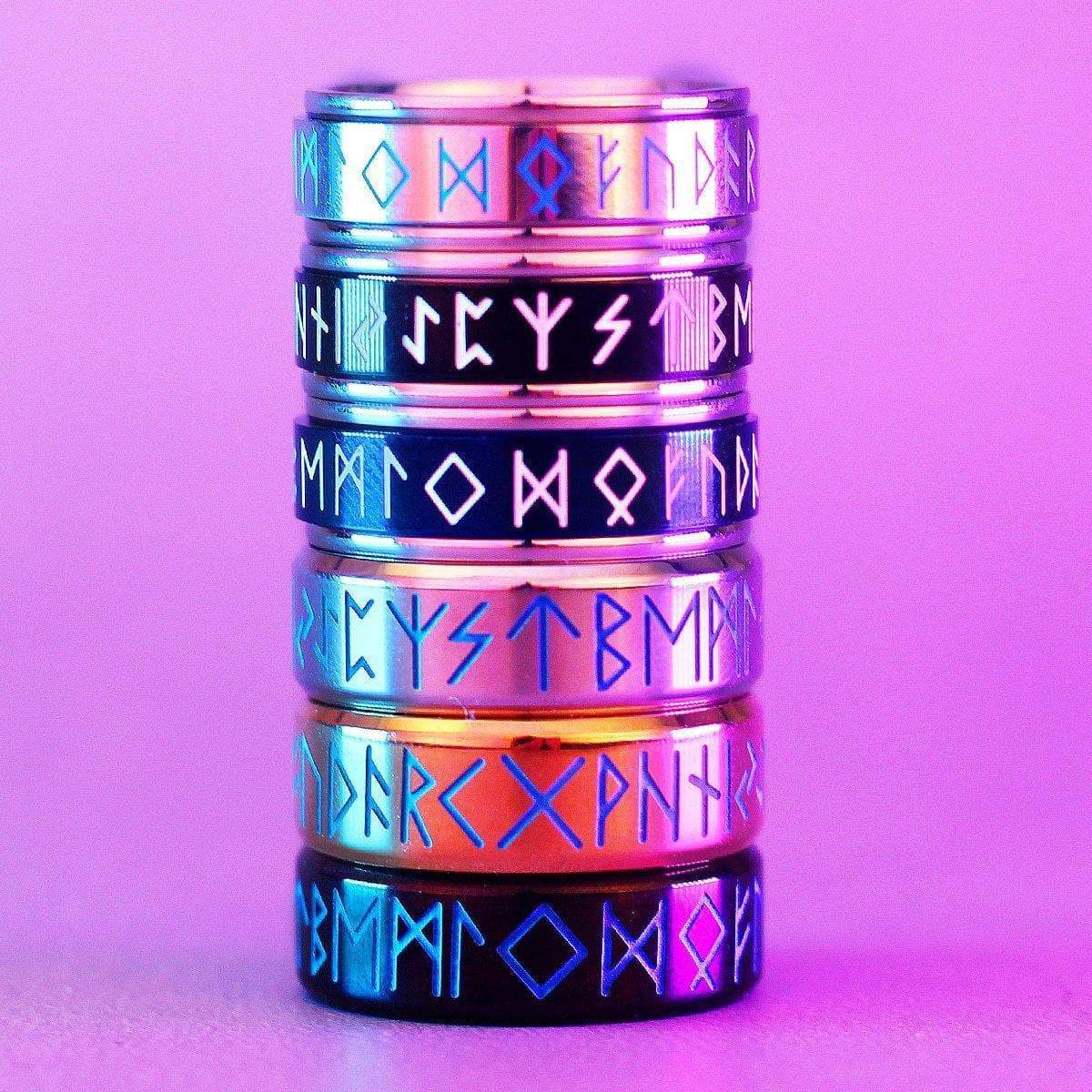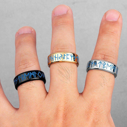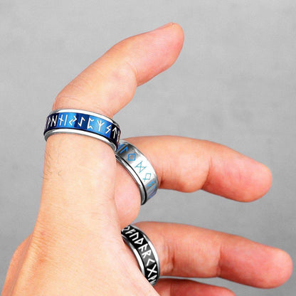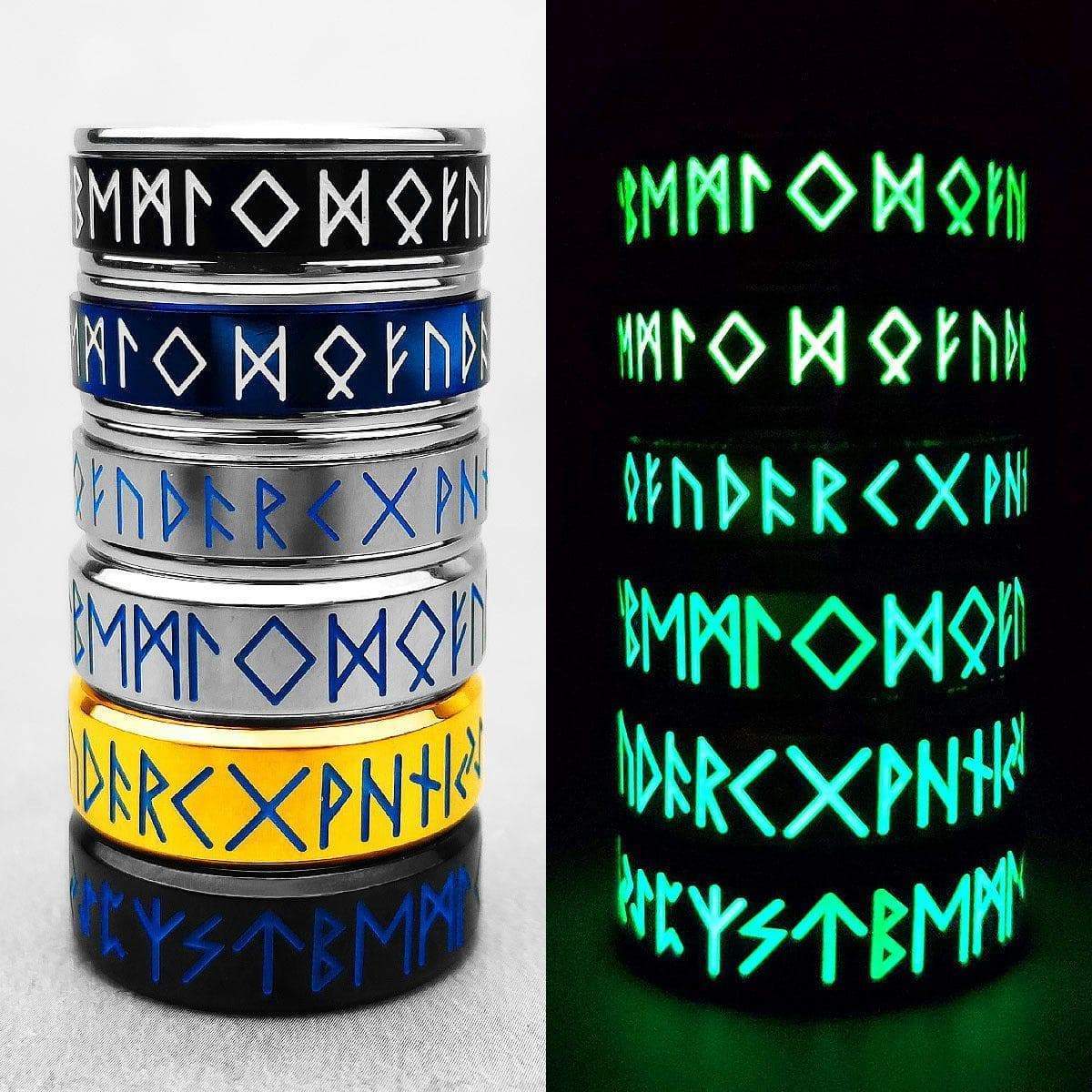 Viking Nordic Runic Glowing Stainless Steel Ring