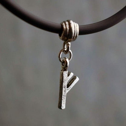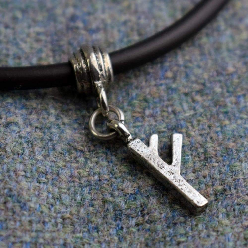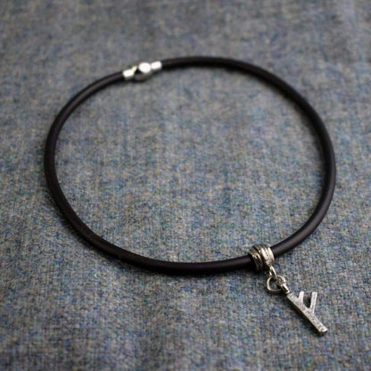 In Norse lore, the god, Odin, impaled his heart with his own spear and hung on the Yggdrasil, for nine days and nights all to perceive the meaning of the runes. Legend says that the runes were the original source of fate and emerged from the Well of Urd beneath Yggdrasil the ‘Tree of Life’. Runes are the letters in a set of related alphabets known as runic alphabets and became widely used amongst the many Germanic tribes that viewed for survival throughout Europe. This Choker features a finely crafted Fehu Runic Alphabet (Letter F) pewter pendant. A perfect accessory for the modern Viking.