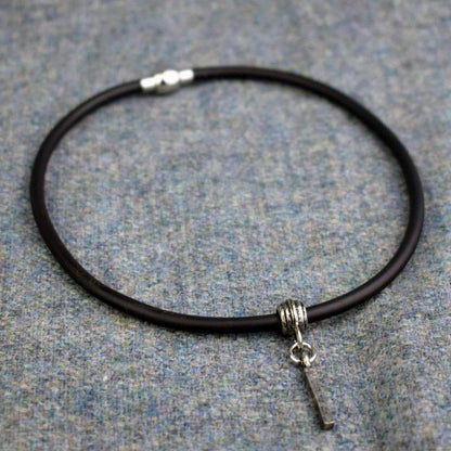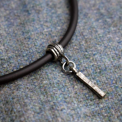 In Norse lore, the god, Odin, impaled his heart with his own spear and hung on the Yggdrasil, for nine days and nights all to perceive the meaning of the runes. Legend says that the runes were the original source of fate and emerged from the Well of Urd beneath Yggdrasil the ‘Tree of Life’. Runes are the letters in a set of related alphabets known as runic alphabets and became widely used amongst the many Germanic tribes that viewed for survival throughout Europe. This Choker features a finely crafted Isa Runic Alphabet (Letter I) pewter pendant. A perfect accessory for the modern Viking.
