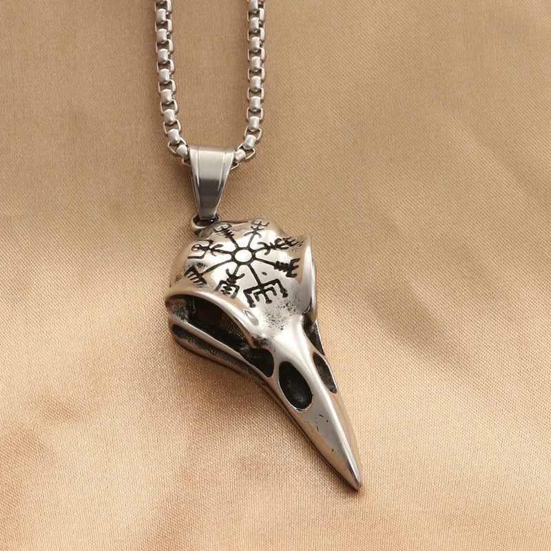 Channel the wisdom of Odin and the power of the raven with this striking Viking raven skull pendant necklace. Inspired by Norse mythology, this piece embodies the mystique of Huginn and Muninn, the ravens of Odin, symbolizing thought and memory.