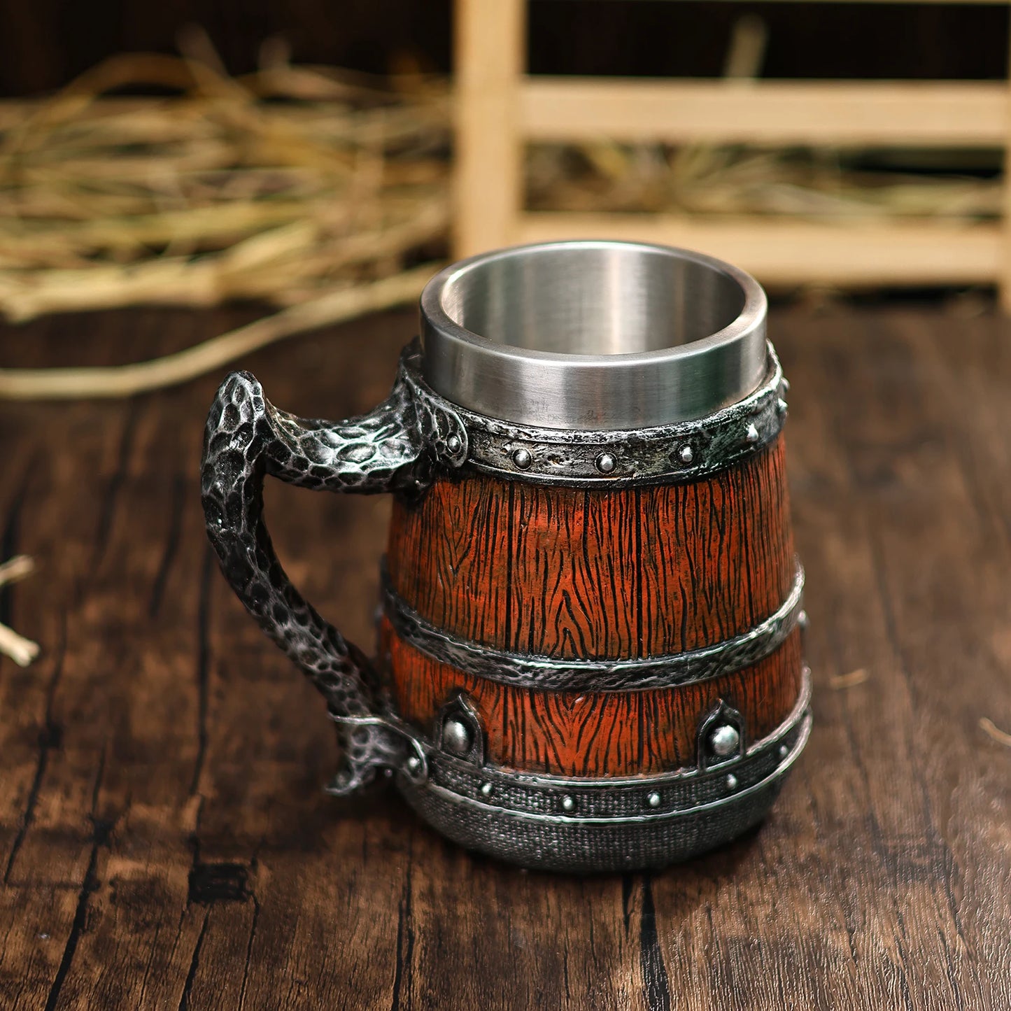 Elevate your drinking experience with this handcrafted Viking Wooden Steel Tankard, designed for true warriors who appreciate bold craftsmanship. This premium tankard combines rustic wooden aesthetics with a stainless steel interior, ensuring durability and an authentic medieval feel.
