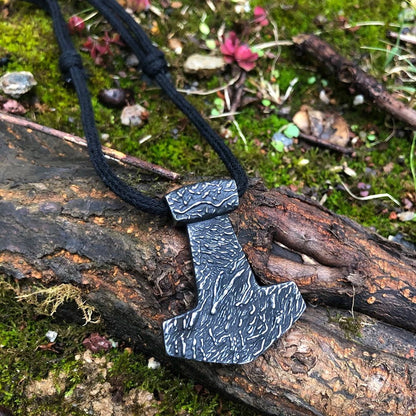 This pendant necklace showcased an important character in the Viking culture. Thor's Mjolnir is one of the most recognizable symbols from Norse mythology. It symbolizes strength and courage even in the face of great challenges. It was worn by Viking warriors in the past for protection in battle.