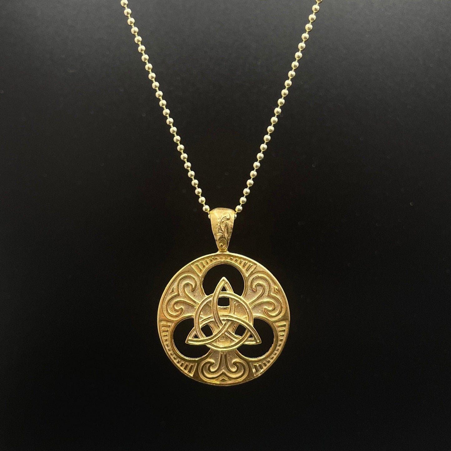 The Trinity Knot or triquetra was used to symbolize and honor the Mother, Maiden, and Crone of the neo-pagan triple goddess. It signifies the three life cycles of a woman in relation to the phases of the moon. In more recent times, it has come to be recognized as a symbol for ‘The Father, The Son, and The Holy Spirit. Today, it is commonly worn as a symbol of Irish ancestry or everlasting love.